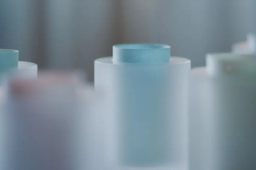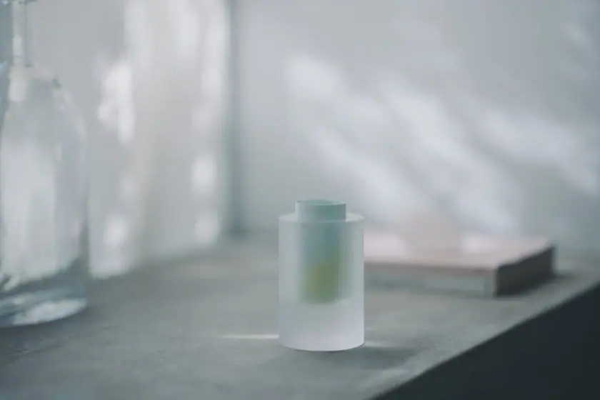 ディフューザーのデザインは、シンプルでありながら、精緻で豊かな感情を引き出すデザインに定評がある、デザイナーの辰野しずかさんが手がけました。器は、美術品の加工を得意とする国外の工場に制作を依頼。切削した分厚いガラスに擦り加工を施し、繊細かつシャープな佇まいに仕上がりました。
