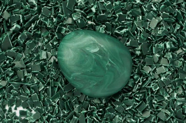 ParallelPlasticsの最大の特徴は、リサイクルプラスチック純度100%の美しさにあります。従来の均一性を追求するのではなく、組成の異なるプラスチックを混ぜ合わせることで生まれる混合物としての個性を「リサイクルらしさ」と捉えています。特に、2色以上を混ぜて模様を発生させるマーブル成型技術を発展させ、天然石のような独特の質感と美しさを追求しています。