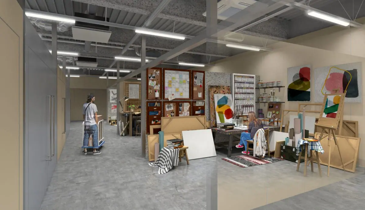 「TERRADA ART STUDIO 京都」のイメージ画像。アーティストの創作活動の拠点として使用できる、全31室の作品制作スタジオが配されている
