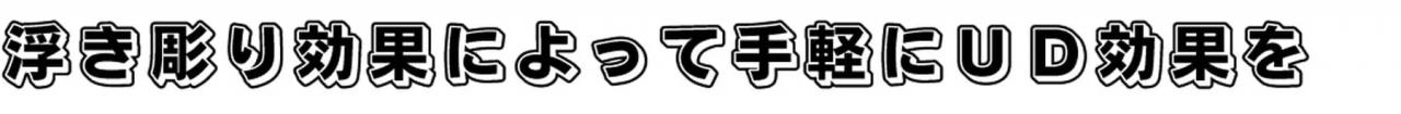 装飾シャドーシリーズは、影付き効果を持つ書体で、力強い印象を与えるためピンポイントでの使用も効果的です。装飾エンボスシリーズは、浮き彫り効果を持つ書体で、写真・画像に重ねて使用することで、手軽にUD(ユニバーサルデザイン)効果が得られます。