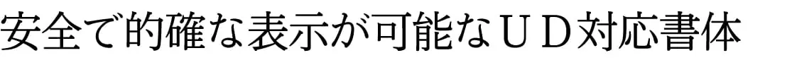楷書風の伝統的な表情を持ちつつ、それでいてフォーマルで読みやすい部分も持ち合わせており、情報を真面目な印象で記す際に最適で、ネガティブな表現になりにくく、文字がスッと目に入ってくるところが特徴です。