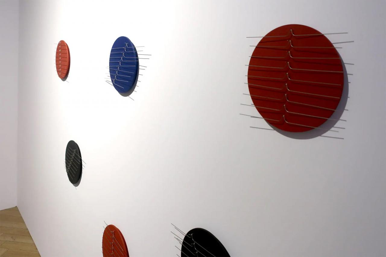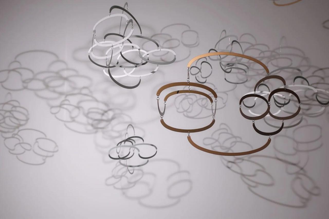 「wave motion」は、少しの風でも針がユラユラと揺れ、まるで虫の脚のような動きがユニーク。天井からぶら下げることが多いモビールだが、壁付けできる仕様になっていたのも面白い。空間に軽やかさと遊び心を与えてくれる。