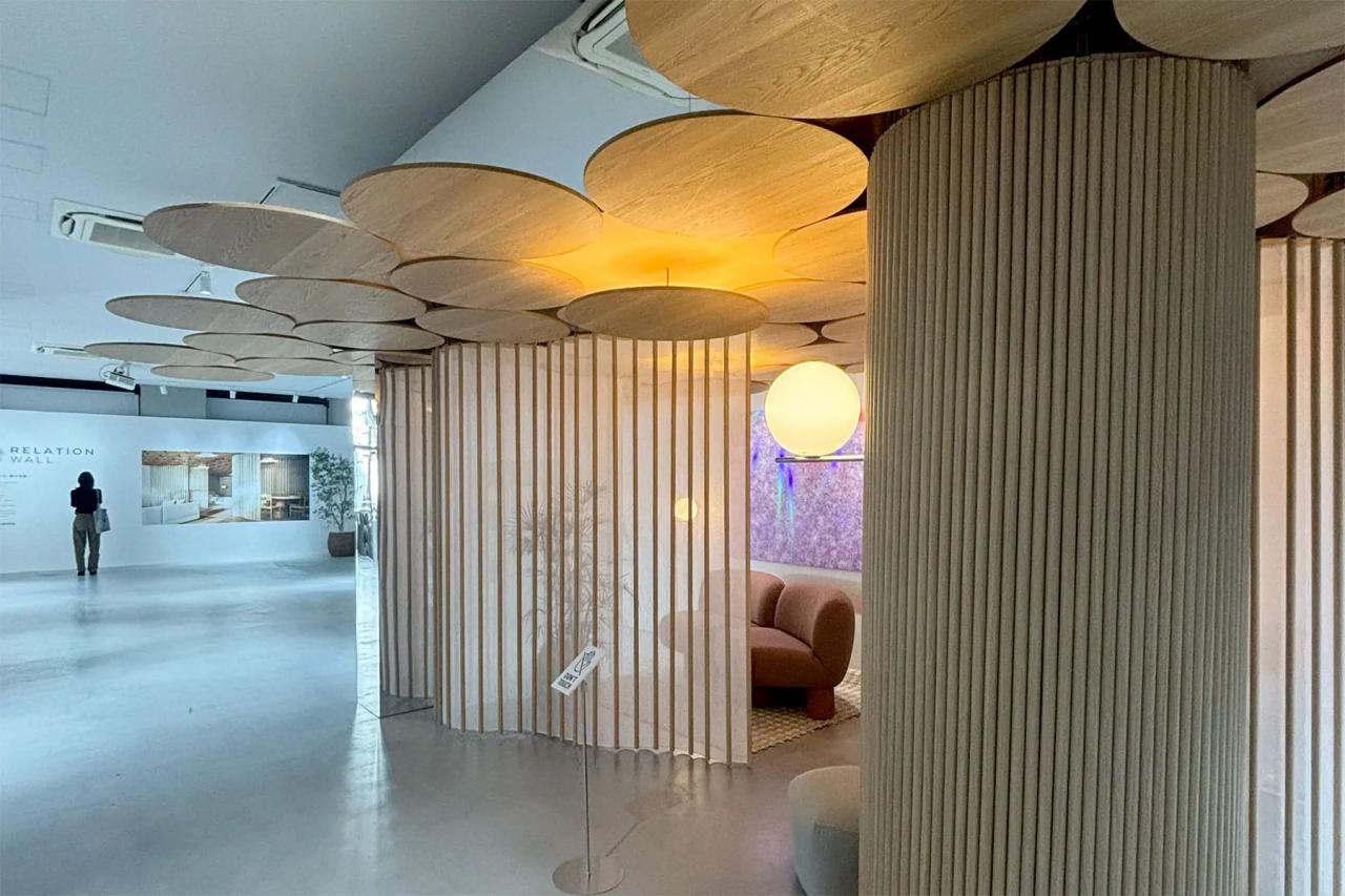 「THE LIONS」は、建築家の永山祐子と共に開発した、天井のレールに沿って自由に動かせる可動式の壁「Relation Wall」を披露