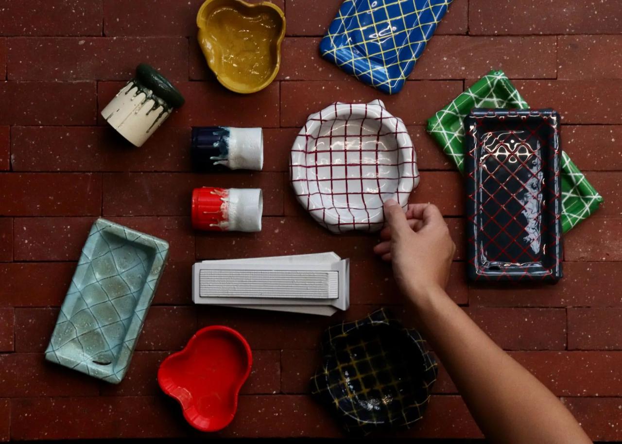 神戸芸術工科大学在学中に、末瀬篤人、川島凜、伊藤陽介の3人で設立。彼らは大学内に3Dプリンターがあった「3Dプリンターネイティブ」とも言える世代だ。今回展示した作品は3Dプリンターで作成したフラワーベースやトレーなどのインテリアオブジェクトで、プラスチックを出力した後に「炙る」工程を加えることで、陶器の釉薬のように1点ずつ異なる表情を生み出している。