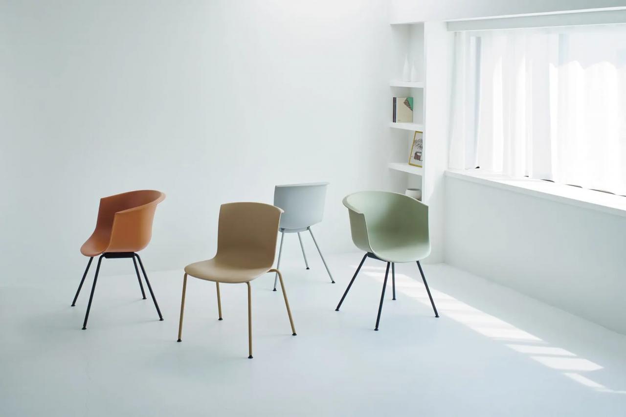 軽量で機能性に優れたプラスチック家具の名作を生み出してきたヴィトラは、近年、素材を再生プラスチックへと段階的に移行しています。家庭から回収された使用済みプラスチック容器を原料とする再生プラスチックは、石油由来のプラスチックと比べてCO2排出量を約54%削減し、エネルギー消費も大幅に抑えることができます。この再生プラスチックにガラス繊維を組み合わせることで、強度と耐久性を備えた「ティプ トン RE」が誕生しました。