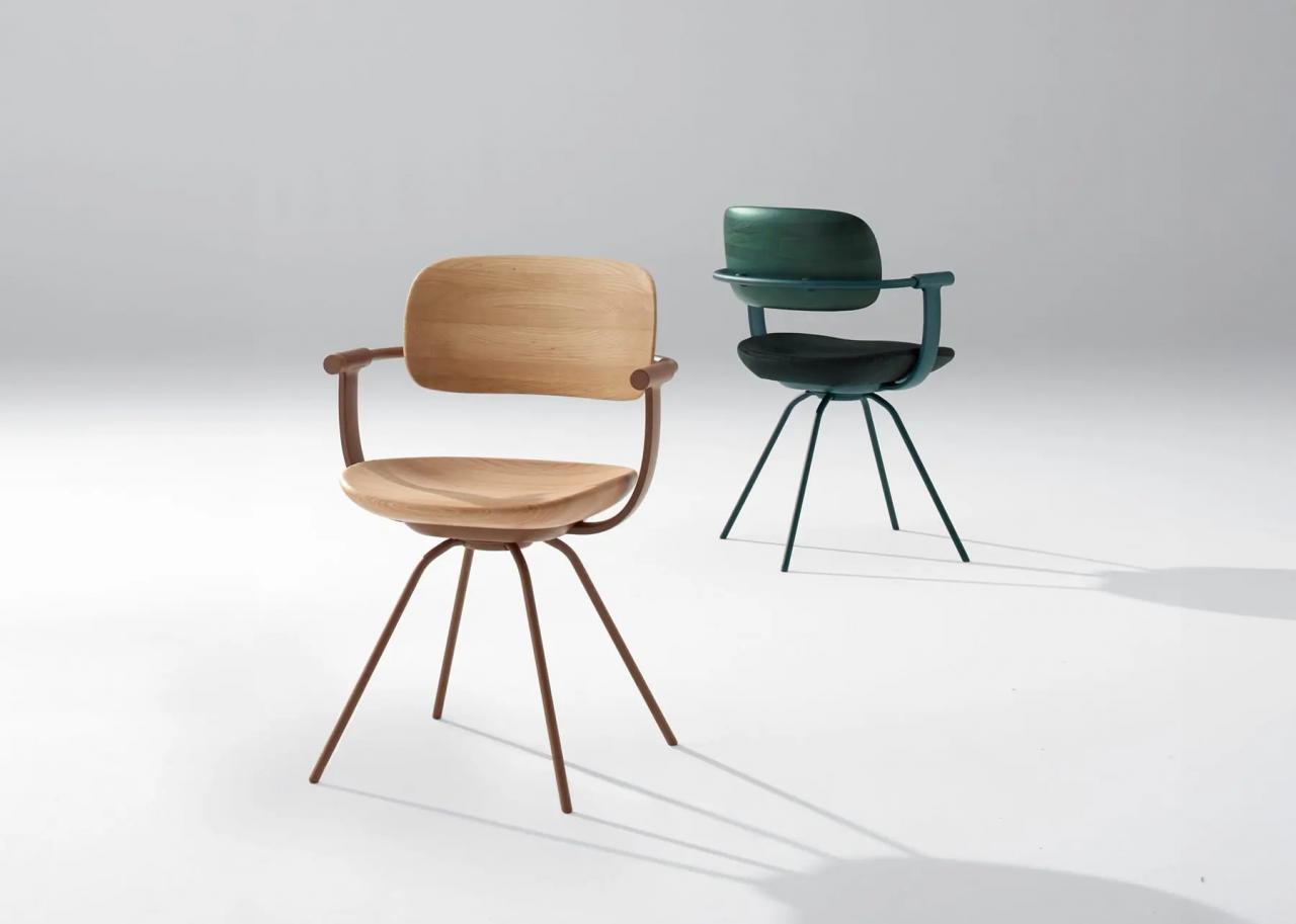 イタリア語で「小さな食堂」を意味する『CANTINETTA』は、縮小傾向にある住環境に対応したコンパクトなサイズ設計が特徴です。チェアはアーム付きとアームレスの2種類を展開し、座面は張座、板座、ペーパーコードの3タイプから選択可能。
