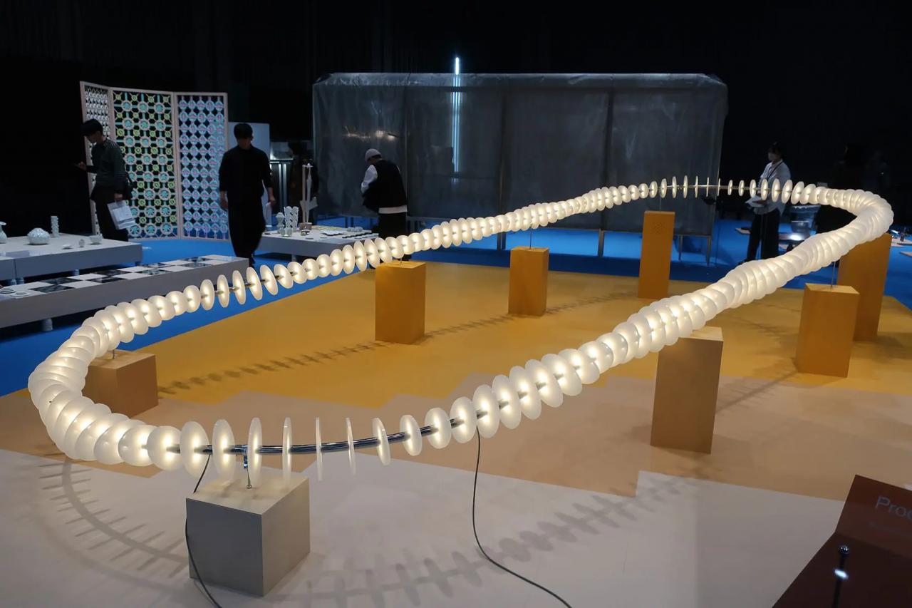 今回は血管治療に用いられる「ステント」という医療機器にフォーカス。「ステント」の精密な構造美に着目し、照明へとつくり変えた。円形ステージ上に草花が群生するようなインスタレーションからは、儚さと美しさも感じられる。人間の命を救う医療機器という役割からうまれたプロダクトの、新たな側面を提示していた。
