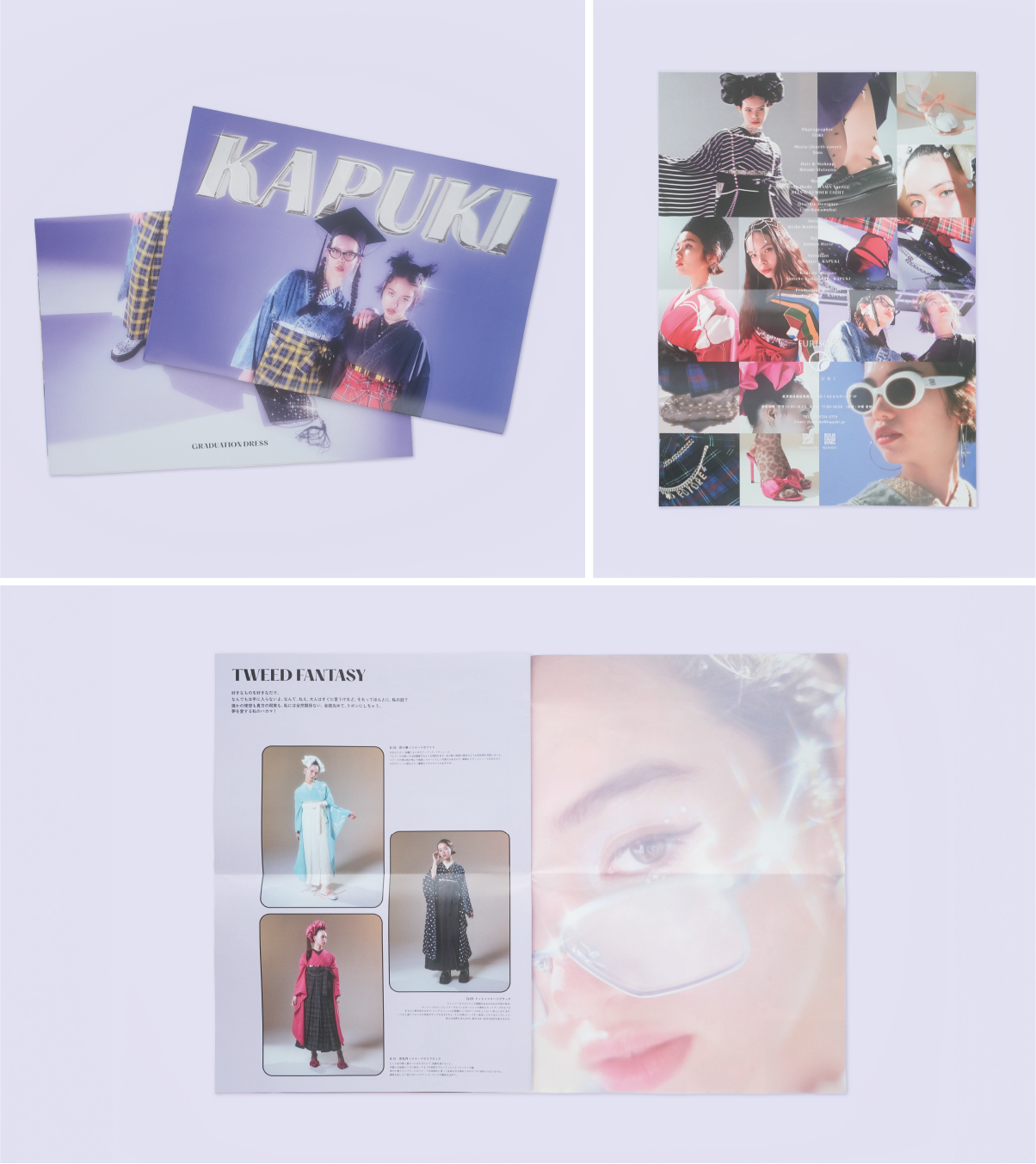 フリーランスとしては、着物ブランドの振袖ラインである「FURISODE KAPUKI」のカタログ制作が、個人的に印象深い仕事のひとつですね。FURISODE KAPUKIは、チェック柄やデニム生地を用いて、日本の“和”とトレンドを組み合わせた、エッジの効いたデザインが特徴的なブランドです。