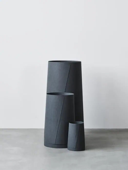 適度なしなやかさと、革のように滑らかな質感を持つゴミ箱「KAMIKA BIN」。その素材は、自動車用部品として用いられる特殊機能紙の廃材からつくられています。特殊機能紙メーカーのセキネシール工業株式会社と、インダストリアルデザイナーのNAO IWAMATSUさんによる協働から生まれたプロダクトです。